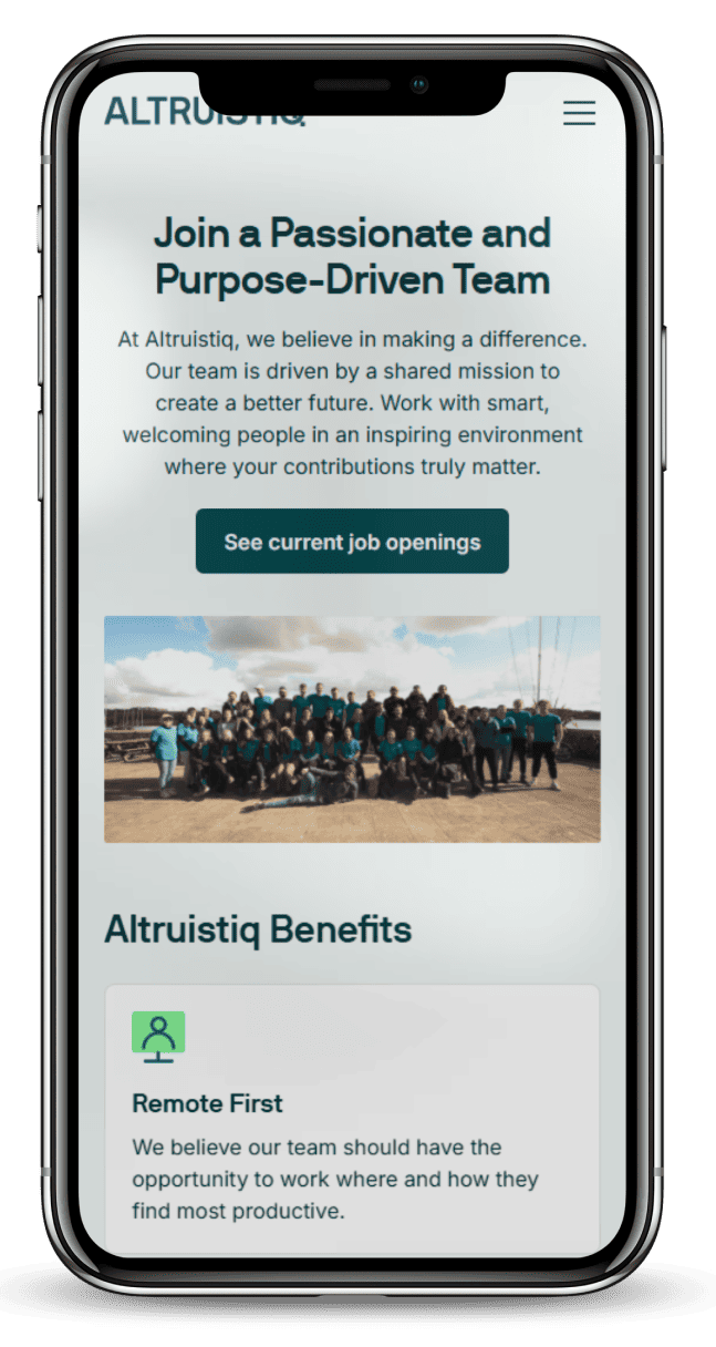 The redesigned website for Altriuistiq successfully addressed the company’s challenges and exceeded expectations. It provided a modern, user-friendly platform that effectively showcased Altriuistiq’s mission and services, improved user engagement, and streamlined functionality. The strategic approach and collaboration with Altriuistiq ensured a successful digital transformation, allowing them to reach a wider audience and enhance their overall impact. The new website serves as a powerful tool for Altriuistiq, enhancing their online presence and solidifying their position as a trusted resource for sustainable business practices.
