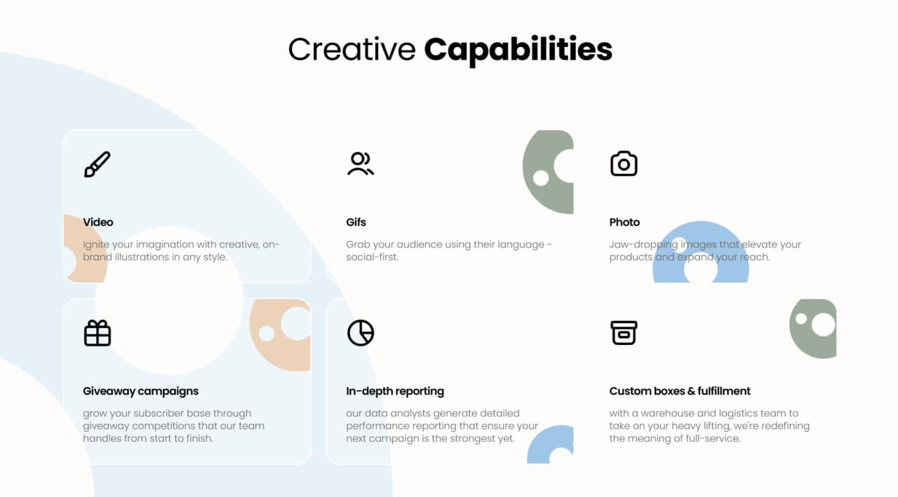 End-to-end influencer marketing services that are exclusive to your brand and completely customized to meet your needs.