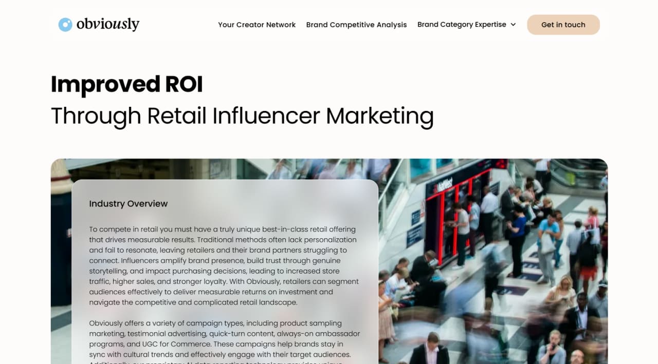 Obviously is a premier online platform that specializes in influencer marketing for the world’s most iconic brands. Their mission is to connect brands with the right influencers to create impactful and authentic marketing campaigns that drive engagement and deliver results.