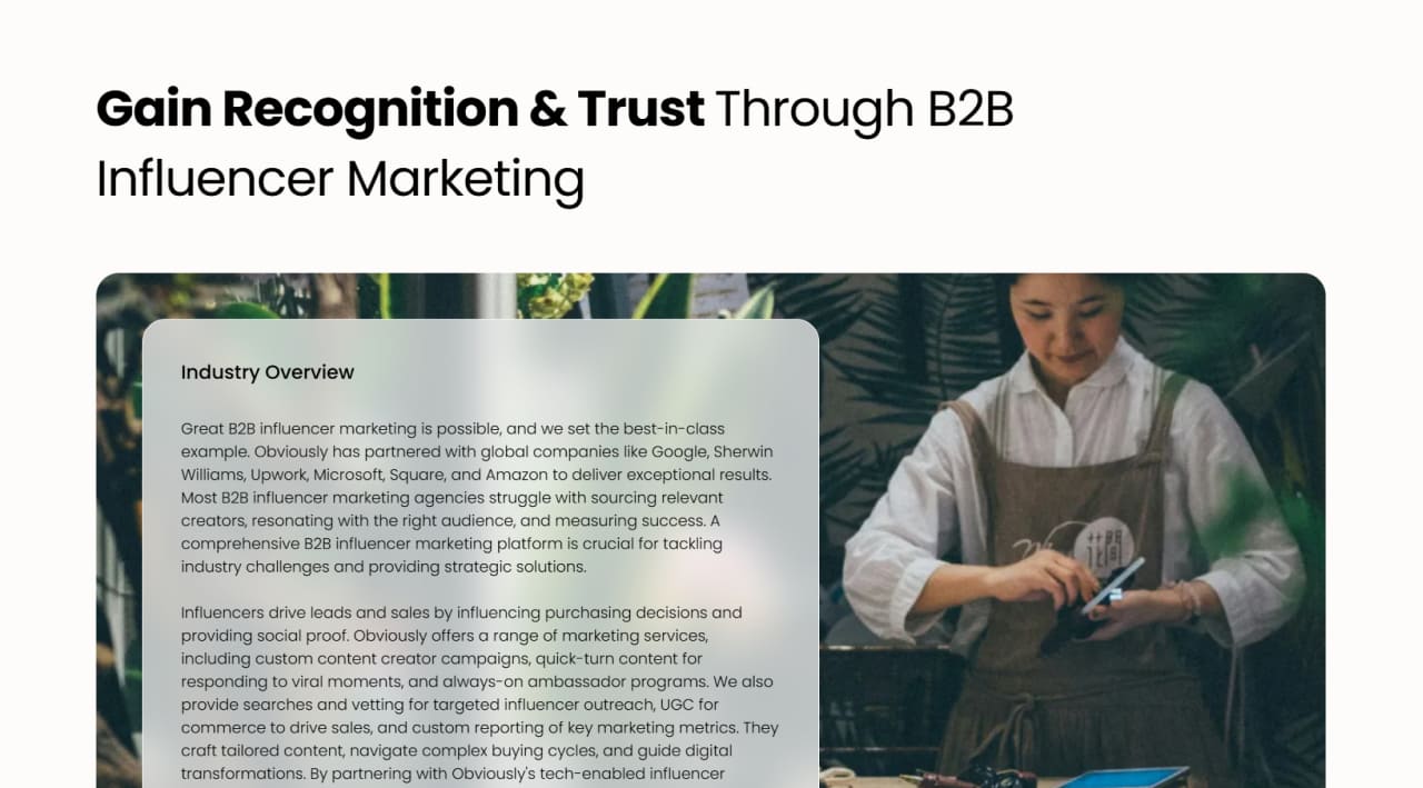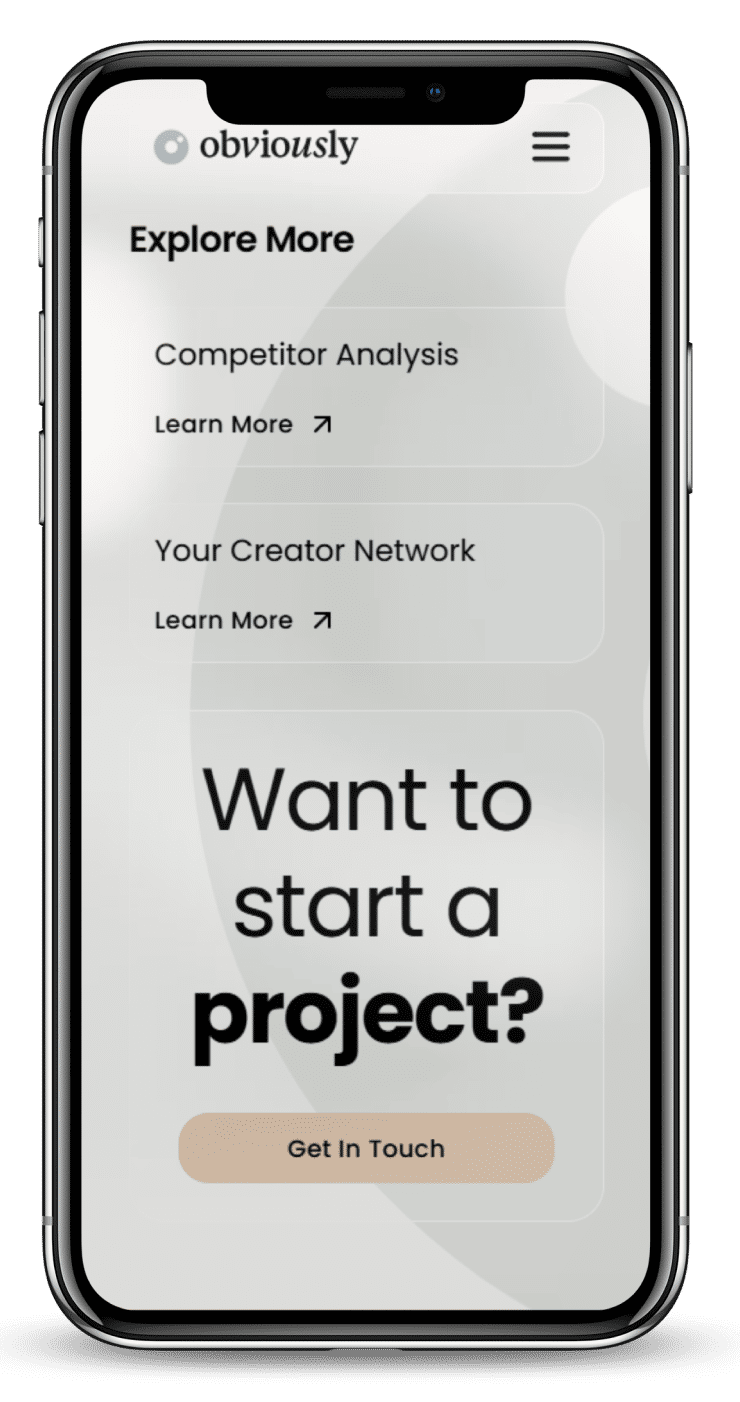 Challenge: Obviously’s existing website was not effectively showcasing their capabilities or engaging potential clients. They needed a modern, user-friendly platform that would clearly communicate their expertise in influencer marketing and attract top-tier brands. The website also required enhanced functionality to support their growing network of influencers and clients.